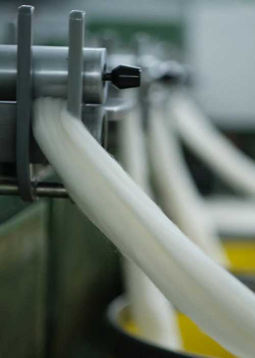 YILEI配备德国意大利进口精纺设备,包括意大利Sant`Andrea预纺设备、德国Qingze和意大利Cognitex精纱机、德国Cilaifu Autoconer X6自卷机、瑞士SSM拉丝机等。我们拥有15000纺丝精密设备、5000纺丝半精密设备以及恒温恒湿车间。我们坚持对环境负责任的态度,实施高效、清洁、低碳、循环的绿色生产体系。并严格控制生产车间的温度和湿度,力求在满足工艺要求的同时,尽量减少对羊毛和羊绒纤维结构的损坏,确保优良的纱线质量。